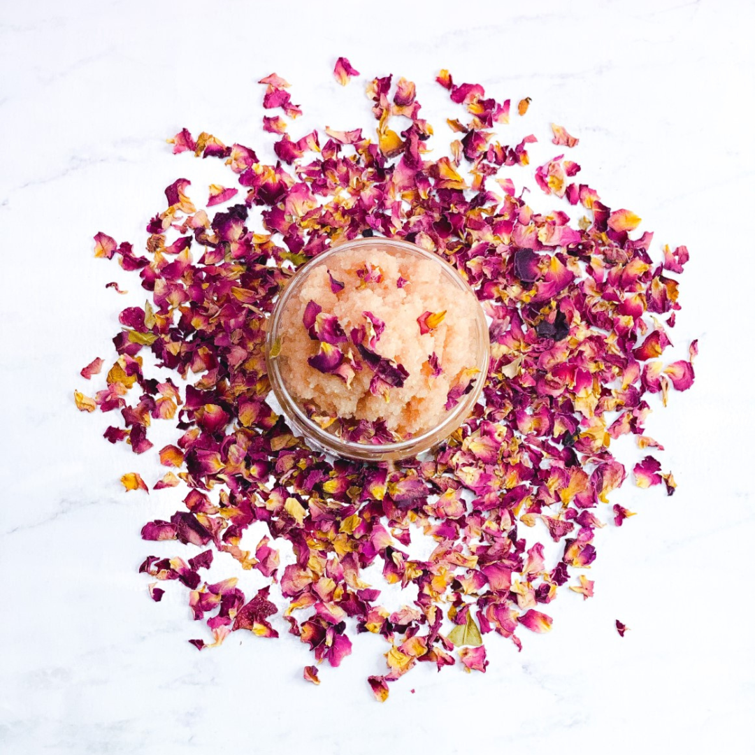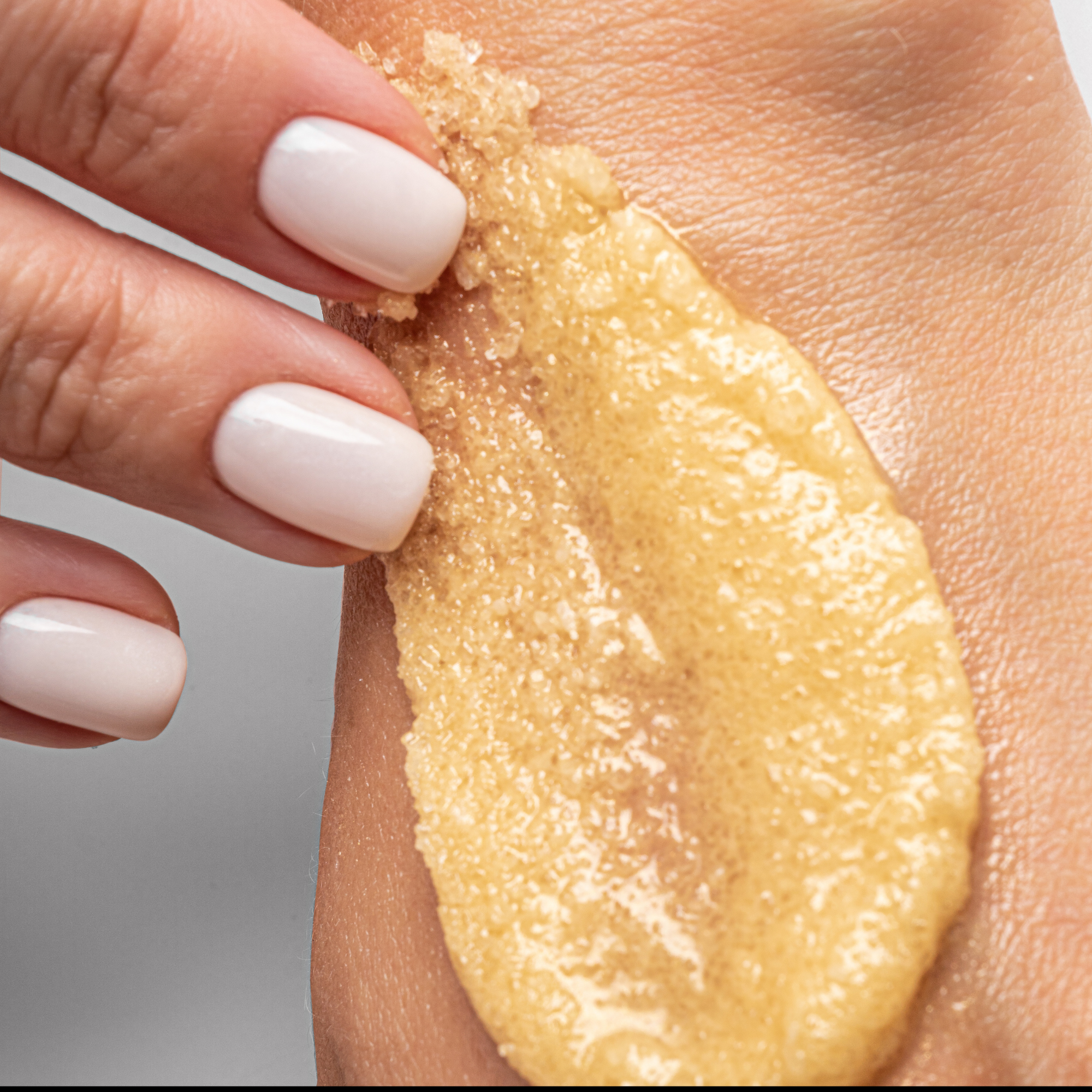 A luxurious scrub that gently exfoliates (removes dead skin cells) to reveal smoother, softer skin and glowing skin. Fine sugar crystals buff away dullness without stripping, leaving a smooth finish.